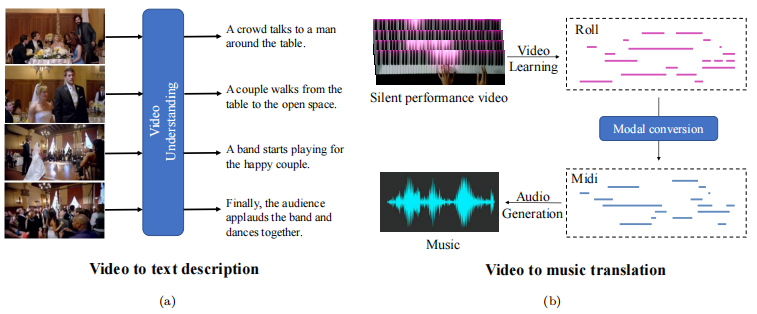 作为计算机视觉和自然语言处理两大技术结合的典范,跨模态转换可以更大地提升在线检索效率。比如对一段冗长的视频给出简要的自然语言描述,或者给一段视频信息生成与之相关的音频信号灯。